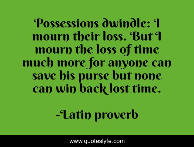 This page presents the quote "Possessions dwindle: I mourn their loss. But I mourn the loss of time much more for anyone can save his purse but none can win back lost time.". Author of this quote is Latin proverb. This quote is about day, one,.