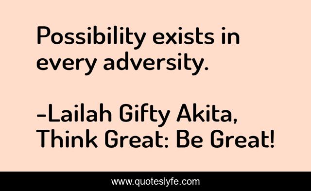 "Lailah Gifty Akita, Think Great: Be Great! Quotes." Quoteslyfe.com, 2025. Fri. 05 Dec. 2025. <https://www.quoteslyfe.com/quote/Possibility-exists-in-every-adversity-94971>.