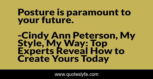 "Cindy Ann Peterson, My Style, My Way: Top Experts Reveal How to Create Yours Today Quotes." Quoteslyfe.com, 2025. Fri. 05 Dec. 2025. <https://www.quoteslyfe.com/quote/Posture-is-paramount-to-your-future-144366>.