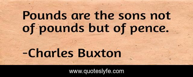 This page presents the quote "Pounds are the sons not of pounds but of pence.". Author of this quote is Charles Buxton. .