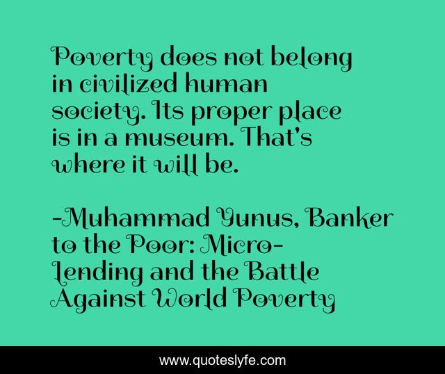 "Muhammad Yunus, Banker to the Poor: Micro-Lending and the Battle Against World Poverty Quotes." Quoteslyfe.com, 2025. Mon. 08 Dec. 2025. <https://www.quoteslyfe.com/quote/Poverty-does-not-belong-in-civilized-human-150373>.