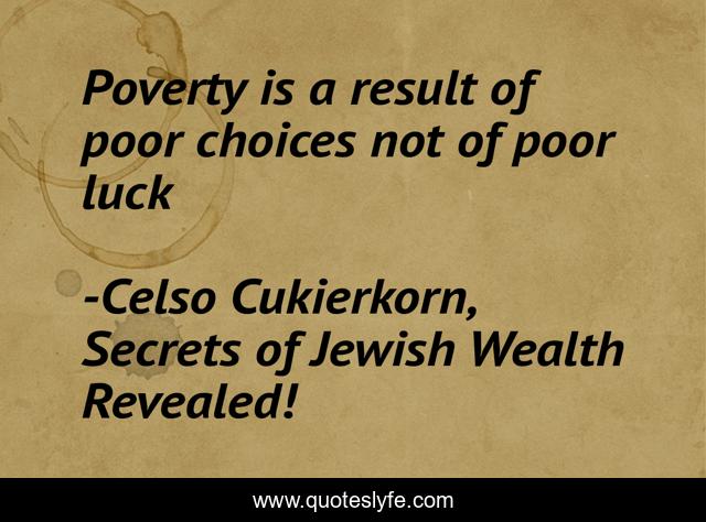 "Celso Cukierkorn, Secrets of Jewish Wealth Revealed! Quotes." Quoteslyfe.com, 2025. Sat. 13 Dec. 2025. <https://www.quoteslyfe.com/quote/Poverty-is-a-result-of-poor-choices-79948>.