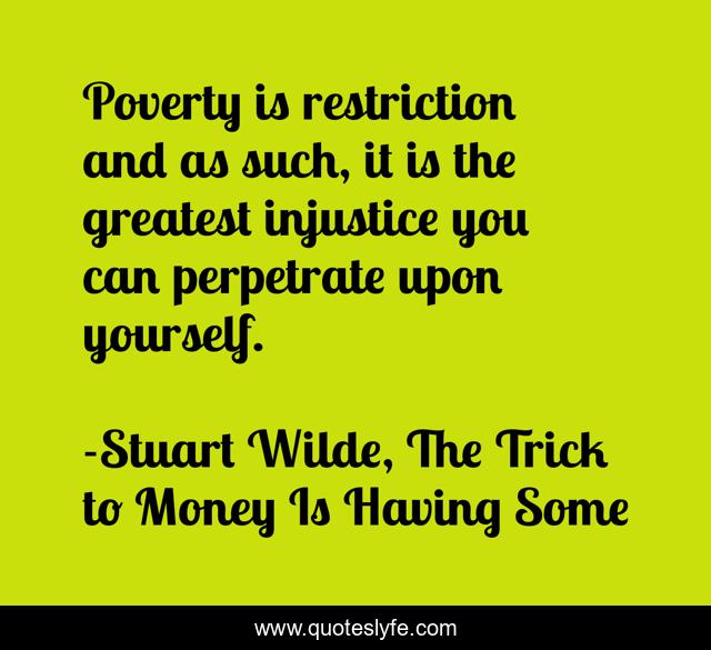 This page presents the quote "Poverty is restriction and as such, it is the greatest injustice you can perpetrate upon yourself.". Author of this quote is Stuart Wilde, The Trick to Money Is Having Some. This quote is about wealth-creation, money, abundance-creation, poverty,.