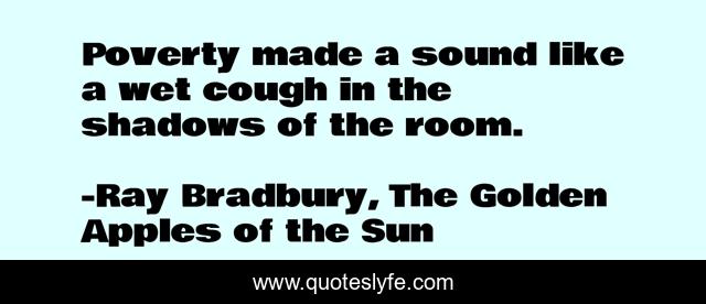 This page presents the quote "Poverty made a sound like a wet cough in the shadows of the room.". Author of this quote is Ray Bradbury, The Golden Apples of the Sun. .