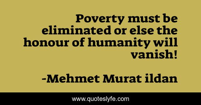 This page presents the quote "Poverty must be eliminated or else the honour of humanity will vanish!". Author of this quote is Mehmet Murat ildan. .