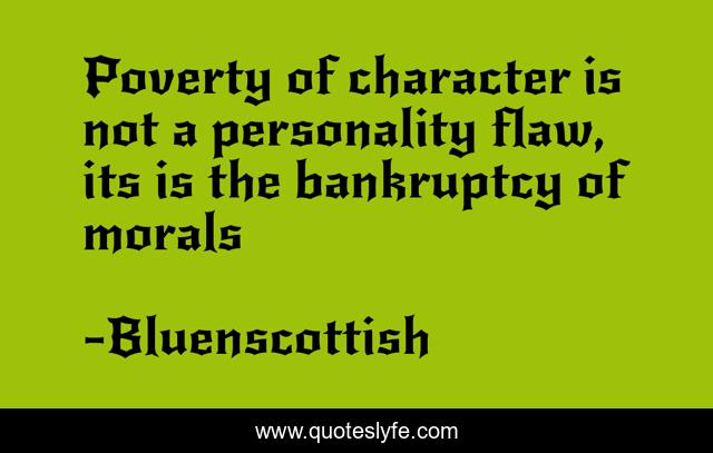This page presents the quote "Poverty of character is not a personality flaw, its is the bankruptcy of morals". Author of this quote is Bluenscottish. This quote is about morals, character, bluenscottish, truth, trust, integrity,.