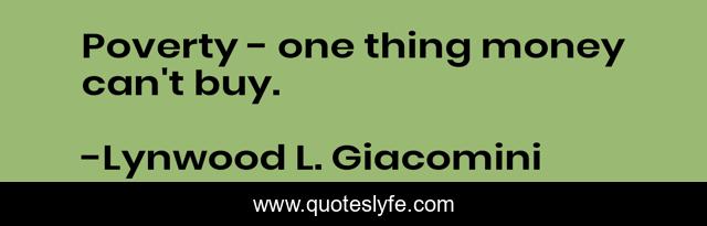 This page presents the quote "Poverty - one thing money can't buy.". Author of this quote is Lynwood L. Giacomini. .