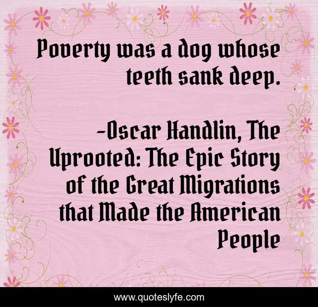 "Oscar Handlin, The Uprooted: The Epic Story of the Great Migrations that Made the American People Quotes." Quoteslyfe.com, 2025. Sat. 06 Dec. 2025. <https://www.quoteslyfe.com/quote/Poverty-was-a-dog-whose-teeth-sank-150436>.