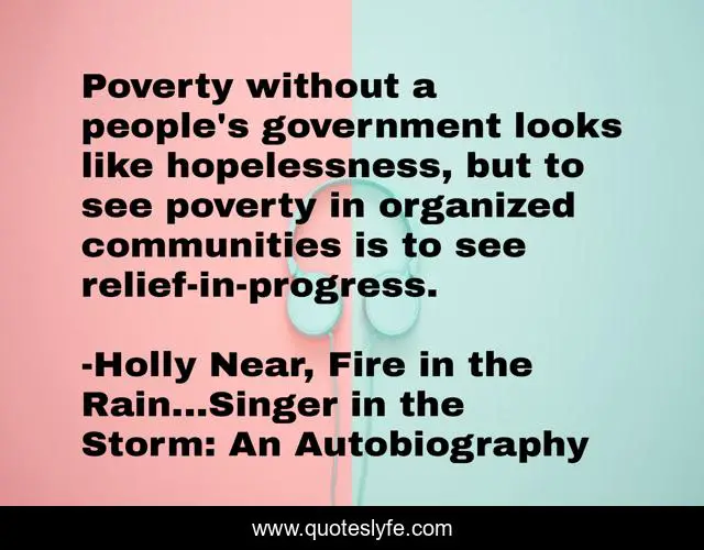 This page presents the quote "Poverty without a people's government looks like hopelessness, but to see poverty in organized communities is to see relief-in-progress.". Author of this quote is Holly Near, Fire in the Rain...Singer in the Storm: An Autobiography. .