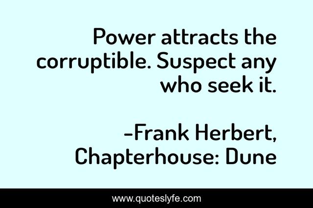 "Frank Herbert, Chapterhouse: Dune Quotes." Quoteslyfe.com, 2025. Fri. 05 Dec. 2025. <https://www.quoteslyfe.com/quote/Power-attracts-the-corruptible-Suspect-any-who-88074>.