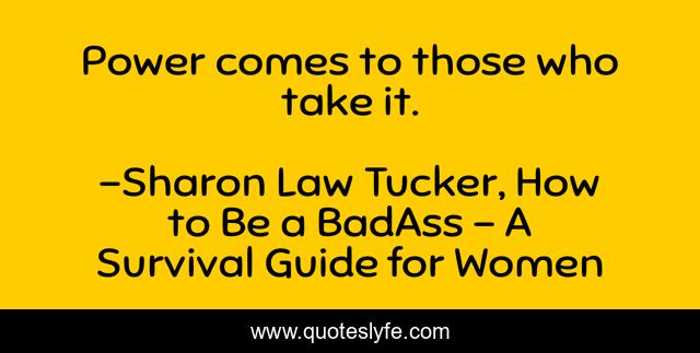 "Sharon Law Tucker, How to Be a BadAss - A Survival Guide for Women Quotes." Quoteslyfe.com, 2025. Fri. 05 Dec. 2025. <https://www.quoteslyfe.com/quote/Power-comes-to-those-who-take-it-140860>.