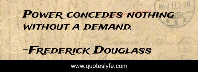 "Frederick Douglass Quotes." Quoteslyfe.com, 2025. Sat. 06 Dec. 2025. <https://www.quoteslyfe.com/quote/Power-concedes-nothing-without-a-demand-56765>.