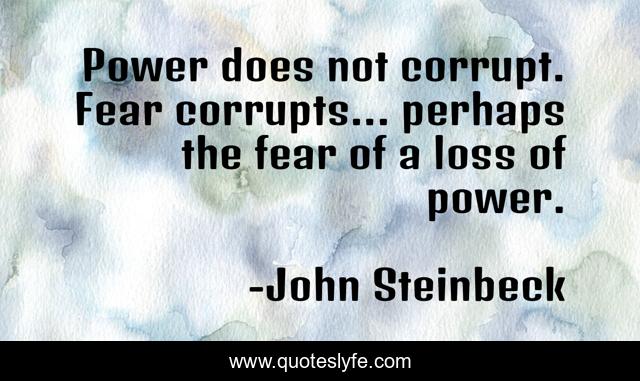 This page presents the quote "Power does not corrupt. Fear corrupts... perhaps the fear of a loss of power.". Author of this quote is John Steinbeck. This quote is about fear, life, power, corruption,.