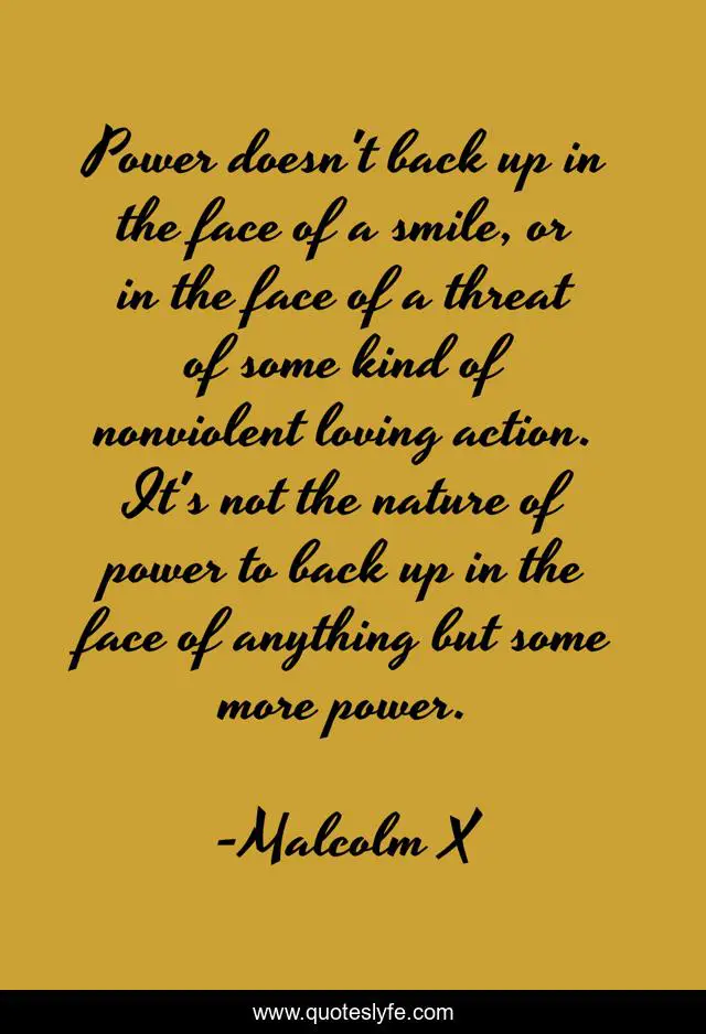 "Malcolm X Quotes." Quoteslyfe.com, 2025. Fri. 05 Dec. 2025. <https://www.quoteslyfe.com/quote/Power-doesn-t-back-up-in-the-324163>.