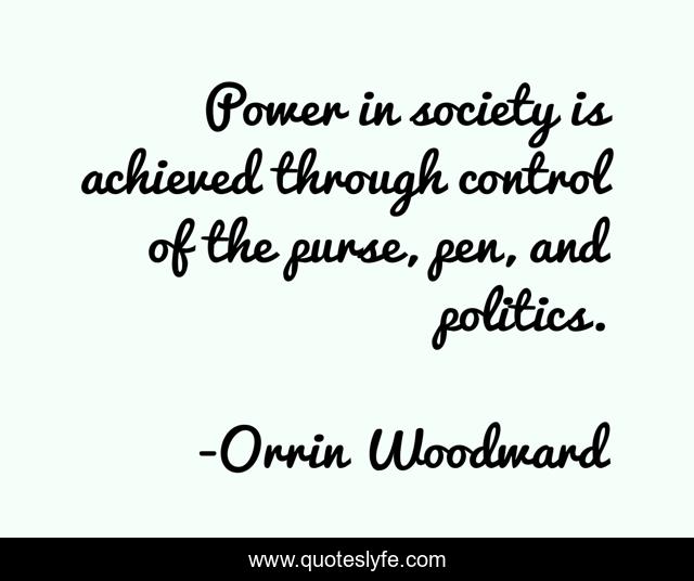 This page presents the quote "Power in society is achieved through control of the purse, pen, and politics.". Author of this quote is Orrin Woodward. This quote is about politics, pen, purse, propaganda, power,.