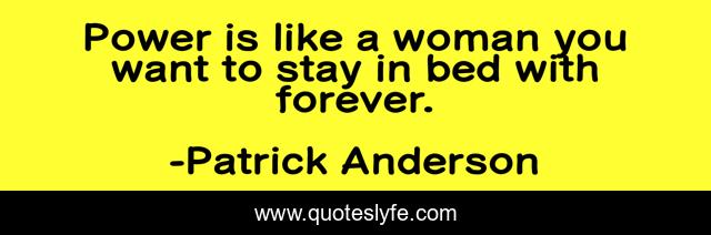This page presents the quote "Power is like a woman you want to stay in bed with forever.". Author of this quote is Patrick Anderson. .