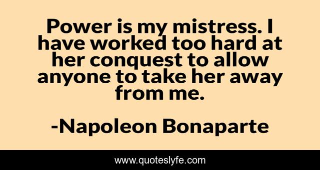 This page presents the quote "Power is my mistress. I have worked too hard at her conquest to allow anyone to take her away from me.". Author of this quote is Napoleon Bonaparte. This quote is about me, mistress, her,.