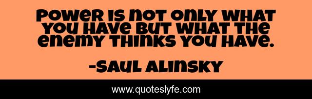 This page presents the quote "Power is not only what you have but what the enemy thinks you have.". Author of this quote is Saul Alinsky. This quote is about enemy, only,.
