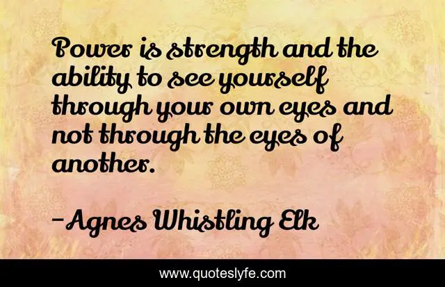 This page presents the quote "Power is strength and the ability to see yourself through your own eyes and not through the eyes of another.". Author of this quote is Agnes Whistling Elk. .