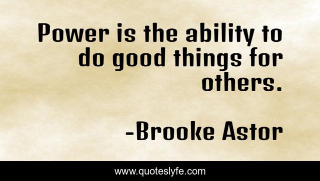 This page presents the quote "Power is the ability to do good things for others.". Author of this quote is Brooke Astor. This quote is about helping, people,.
