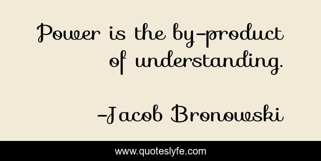 This page presents the quote "Power is the by-product of understanding.". Author of this quote is Jacob Bronowski. This quote is about understanding, by-product,.