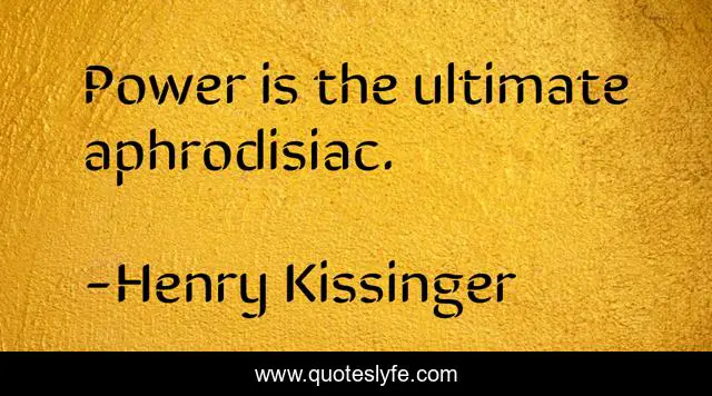 "Henry Kissinger Quotes." Quoteslyfe.com, 2025. Mon. 08 Dec. 2025. <https://www.quoteslyfe.com/quote/Power-is-the-ultimate-aphrodisiac-273614>.