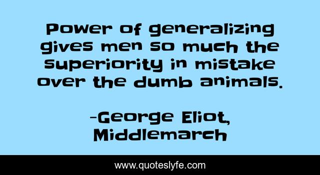 This page presents the quote "Power of generalizing gives men so much the superiority in mistake over the dumb animals.". Author of this quote is George Eliot, Middlemarch. This quote is about simplicity, assumptions,.