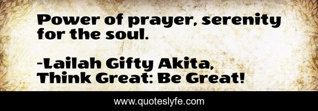 "Lailah Gifty Akita, Think Great: Be Great! Quotes." Quoteslyfe.com, 2025. Mon. 08 Dec. 2025. <https://www.quoteslyfe.com/quote/Power-of-prayer-serenity-for-the-soul-121286>.