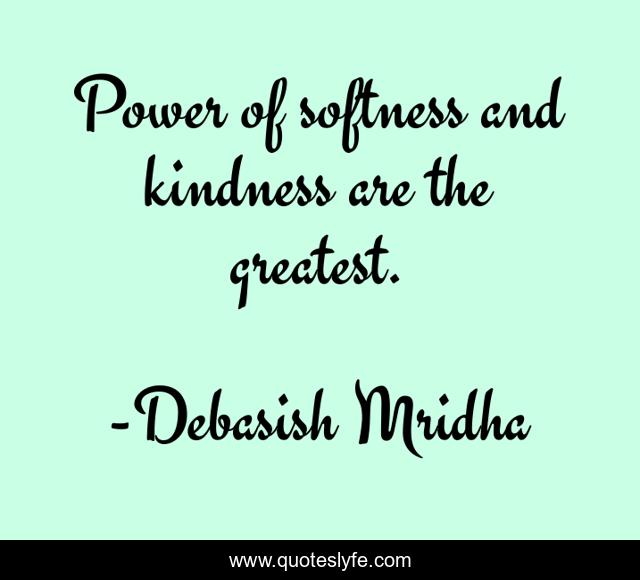 "Debasish Mridha Quotes." Quoteslyfe.com, 2025. Sat. 06 Dec. 2025. <https://www.quoteslyfe.com/quote/Power-of-softness-and-kindness-are-the-68524>.
