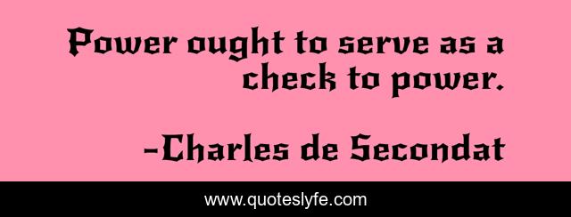 This page presents the quote "Power ought to serve as a check to power.". Author of this quote is Charles de Secondat. This quote is about serve, check, ought,.