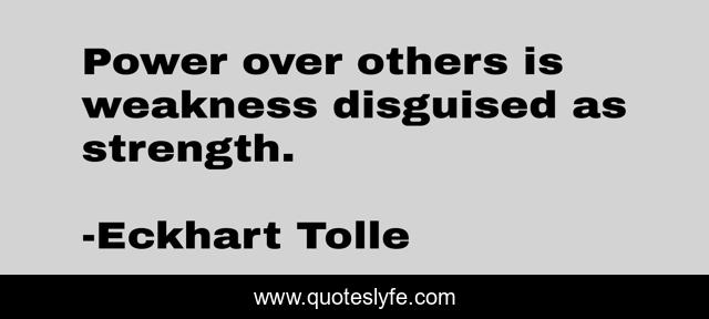 This page presents the quote "Power over others is weakness disguised as strength.". Author of this quote is Eckhart Tolle. This quote is about weakness, power, others,.