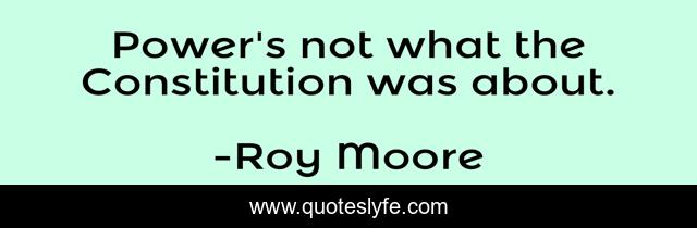 This page presents the quote "Power's not what the Constitution was about.". Author of this quote is Roy Moore. .