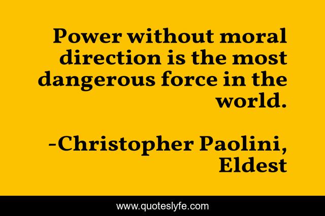 This page presents the quote "Power without moral direction is the most dangerous force in the world.". Author of this quote is Christopher Paolini, Eldest. This quote is about dangerous, direction, morals, power,.