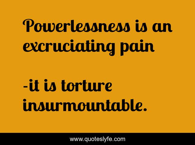 "it is torture insurmountable. Quotes." Quoteslyfe.com, 2025. Mon. 08 Dec. 2025. <https://www.quoteslyfe.com/quote/Powerlessness-is-an-excruciating-pain-189480>.