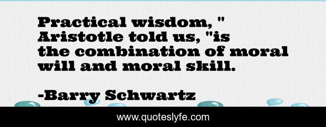 This page presents the quote "Practical wisdom, " Aristotle told us, "is the combination of moral will and moral skill.". Author of this quote is Barry Schwartz. This quote is about morality, wisdom,.