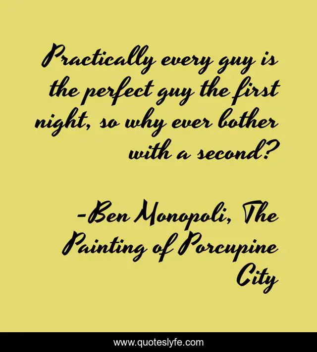 "Ben Monopoli, The Painting of Porcupine City Quotes." Quoteslyfe.com, 2025. Sun. 07 Dec. 2025. <https://www.quoteslyfe.com/quote/Practically-every-guy-is-the-perfect-guy-220862>.