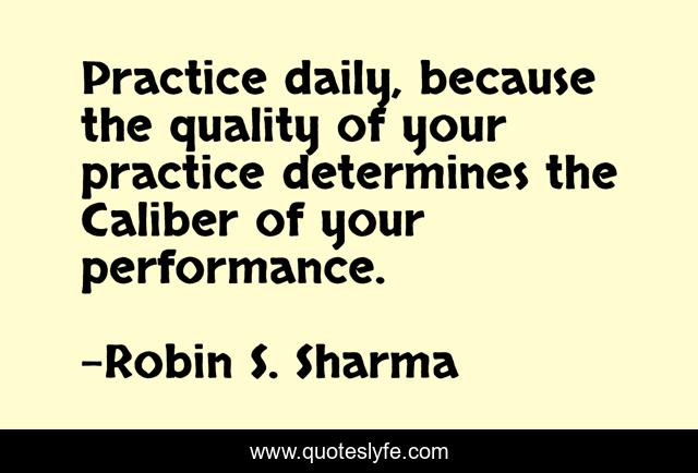 This page presents the quote "Practice daily, because the quality of your practice determines the Caliber of your performance.". Author of this quote is Robin S. Sharma. This quote is about behaviour, attitude,.