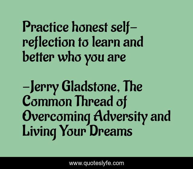 "Jerry Gladstone, The Common Thread of Overcoming Adversity and Living Your Dreams Quotes." Quoteslyfe.com, 2025. Sat. 06 Dec. 2025. <https://www.quoteslyfe.com/quote/Practice-honest-self-reflection-to-learn-and-83242>.