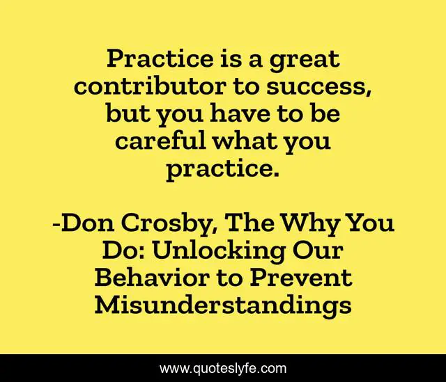 This page presents the quote "Practice is a great contributor to success, but you have to be careful what you practice.". Author of this quote is Don Crosby, The Why You Do: Unlocking Our Behavior to Prevent Misunderstandings. This quote is about personal-development, self-esteem, self-confidence, self-improvement, self-help,.