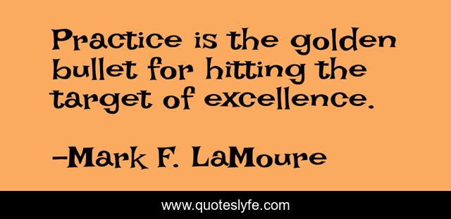 This page presents the quote "Practice is the golden bullet for hitting the target of excellence.". Author of this quote is Mark F. LaMoure. This quote is about self-confidence, uplifting, success, excellent-people, excellence, self-improvement, inspirational, self-help, determination,.
