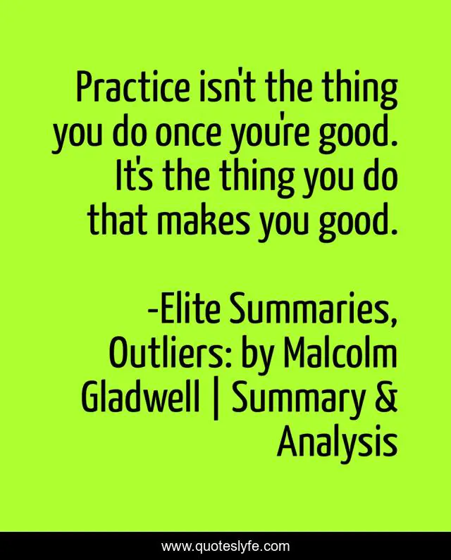 "Elite Summaries, Outliers: by Malcolm Gladwell | Summary & Analysis Quotes." Quoteslyfe.com, 2025. Fri. 05 Dec. 2025. <https://www.quoteslyfe.com/quote/Practice-isn-t-the-thing-you-do-106044>.