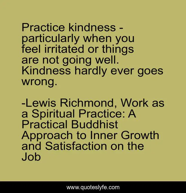 "Lewis Richmond, Work as a Spiritual Practice: A Practical Buddhist Approach to Inner Growth and Satisfaction on the Job Quotes." Quoteslyfe.com, 2025. Sat. 06 Dec. 2025. <https://www.quoteslyfe.com/quote/Practice-kindness-particularly-when-you-feel-irritated-136199>.
