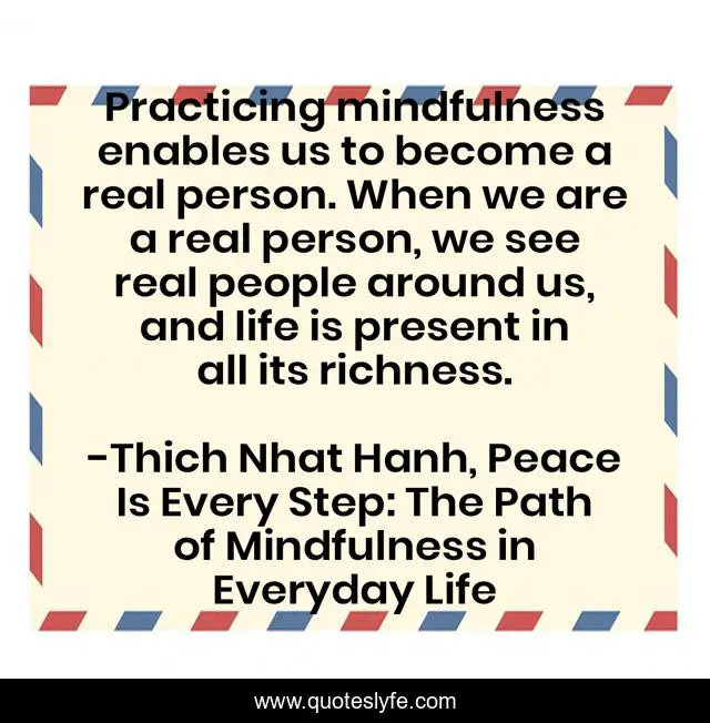 This page presents the quote "Practicing mindfulness enables us to become a real person. When we are a real person, we see real people around us, and life is present in all its richness.". Author of this quote is Thich Nhat Hanh, Peace Is Every Step: The Path of Mindfulness in Everyday Life. .