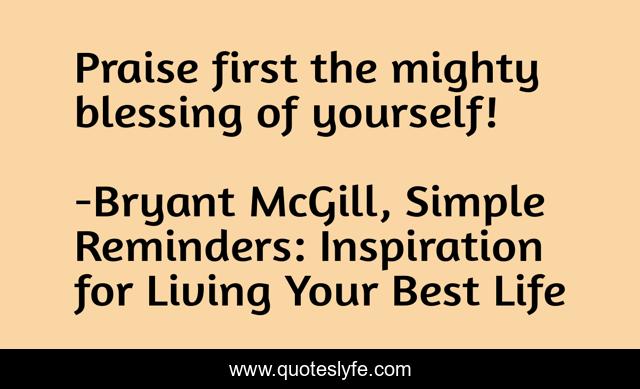 "Bryant McGill, Simple Reminders: Inspiration for Living Your Best Life Quotes." Quoteslyfe.com, 2025. Sat. 06 Dec. 2025. <https://www.quoteslyfe.com/quote/Praise-first-the-mighty-blessing-of-yourself-240896>.