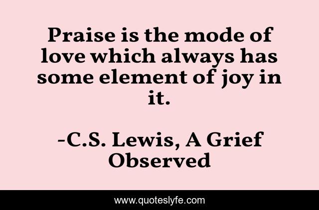This page presents the quote "Praise is the mode of love which always has some element of joy in it.". Author of this quote is C.S. Lewis, A Grief Observed. This quote is about joy, love, praise, affection,.