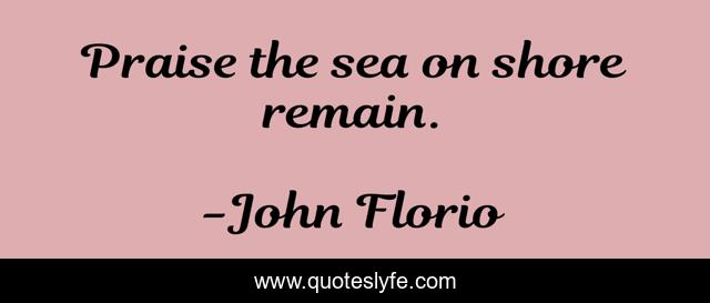 "John Florio Quotes." Quoteslyfe.com, 2025. Sat. 06 Dec. 2025. <https://www.quoteslyfe.com/quote/Praise-the-sea-on-shore-remain-275482>.