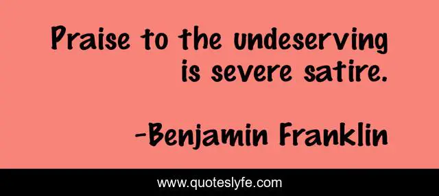 "Benjamin Franklin Quotes." Quoteslyfe.com, 2025. Sun. 07 Dec. 2025. <https://www.quoteslyfe.com/quote/Praise-to-the-undeserving-is-severe-satire-273637>.