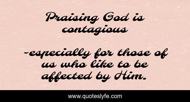 This page presents the quote "Praising God is contagious". Author of this quote is especially for those of us who like to be affected by Him.. .