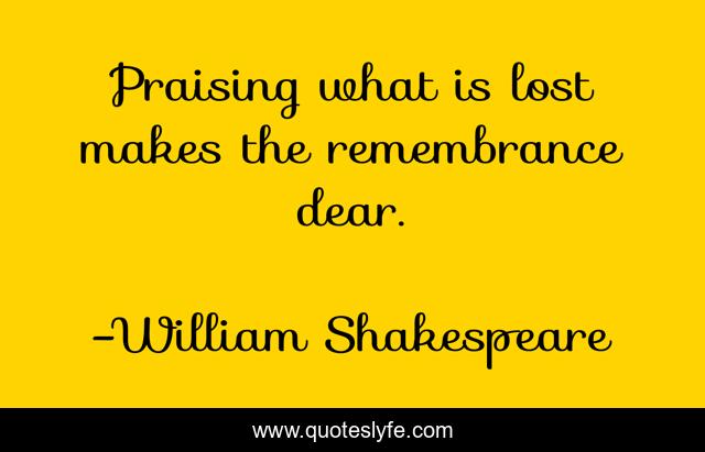 "William Shakespeare Quotes." Quoteslyfe.com, 2025. Fri. 05 Dec. 2025. <https://www.quoteslyfe.com/quote/Praising-what-is-lost-makes-the-remembrance-277556>.