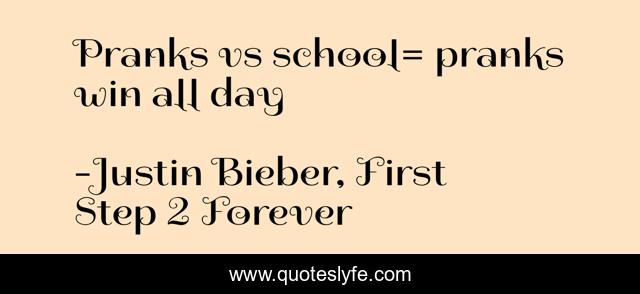 "Justin Bieber, First Step 2 Forever Quotes." Quoteslyfe.com, 2025. Sat. 06 Dec. 2025. <https://www.quoteslyfe.com/quote/Pranks-vs-school-pranks-win-all-day-6642>.